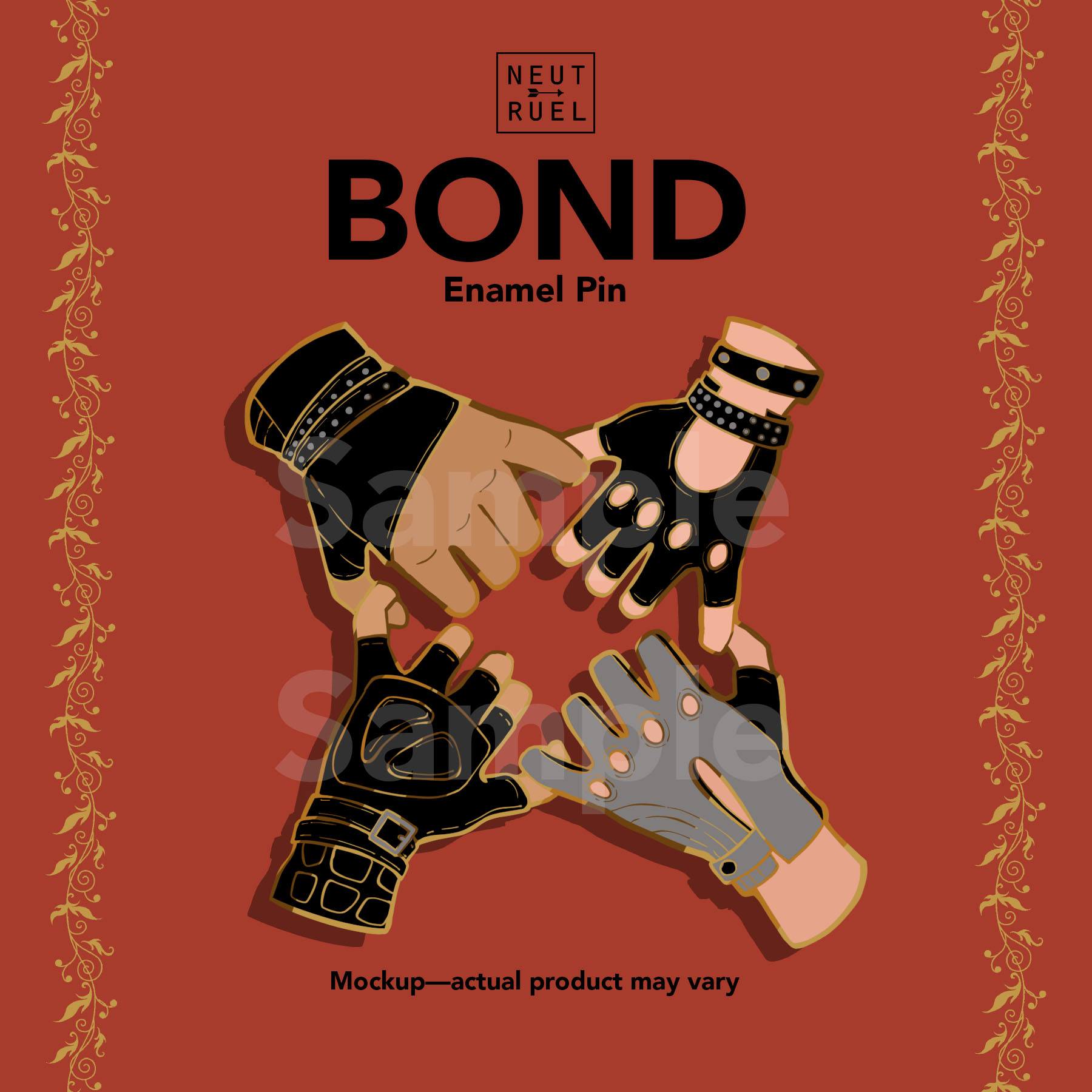 ~1.75" gold plated hard enamel pin inspired by the bond between the four.