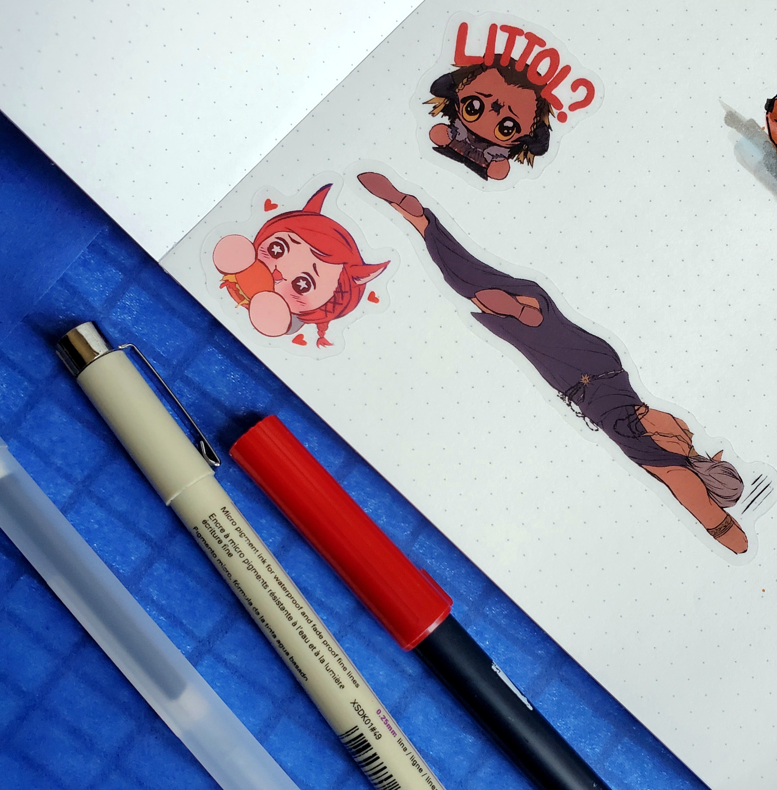 IMPORTANT: If bought alone or with a print (no charm, standee, earrings, etc.), the default shipping cost for stickers is for UNTRACKED letter mail, in a regular envelope with a chipboard insert to prevent bending. If you would like tracked shipping, which comes in a bubble mailer, please add the "Tracked Shipping Add-on" to your cart. If buying multiple prints and/or stickers, you only have to add the tracked shipping once; everything will be packaged together.